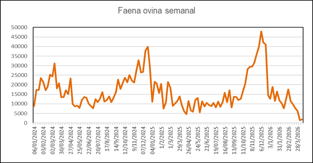 La faena ovina fue de 1.916 cabezas en la semana cerrada el sábado 11 con las ovejas concentrando el 48,5% del total.
